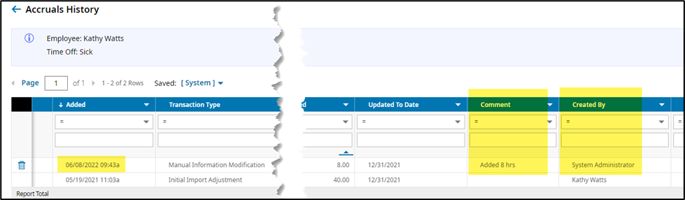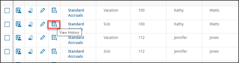 **Even though you chose one type of accrual, it will display all types of time off the employee has available.
