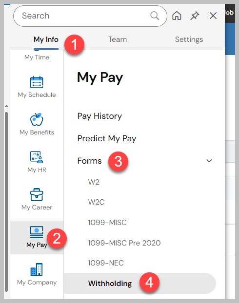 Navigate to My Info > My Pay > Forms > Withholding